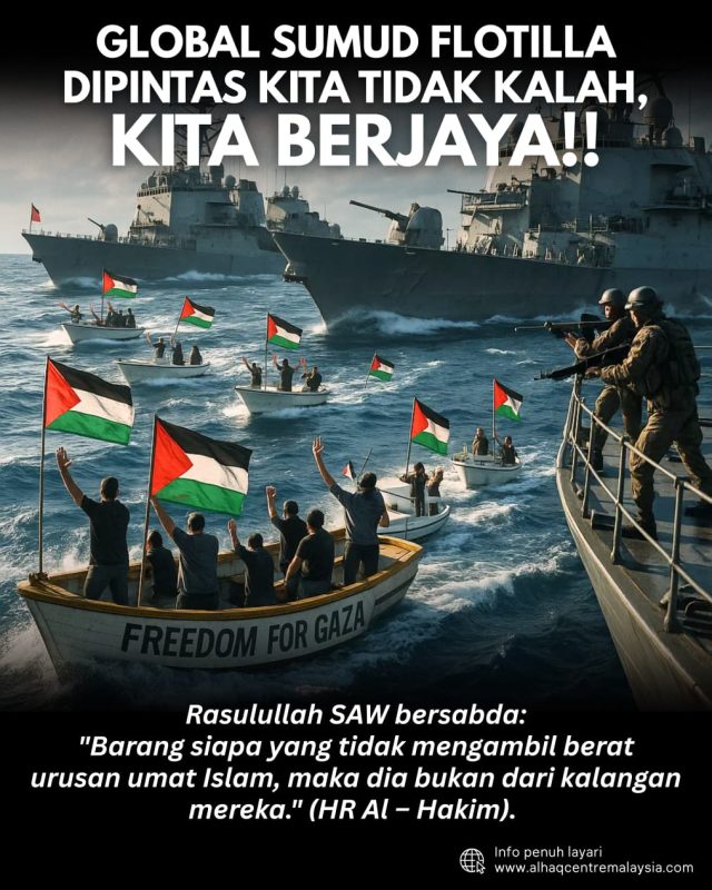 Global Sumud Flotilla telah dihentikan, tetapi semangat Sumud (keteguhan) tidak pernah mati. Mereka boleh memintas kapal, tetapi mereka tidak akan dapat memintas gelombang doa, solidariti dan kesedaran yang telah tersebar ke seluruh dunia.