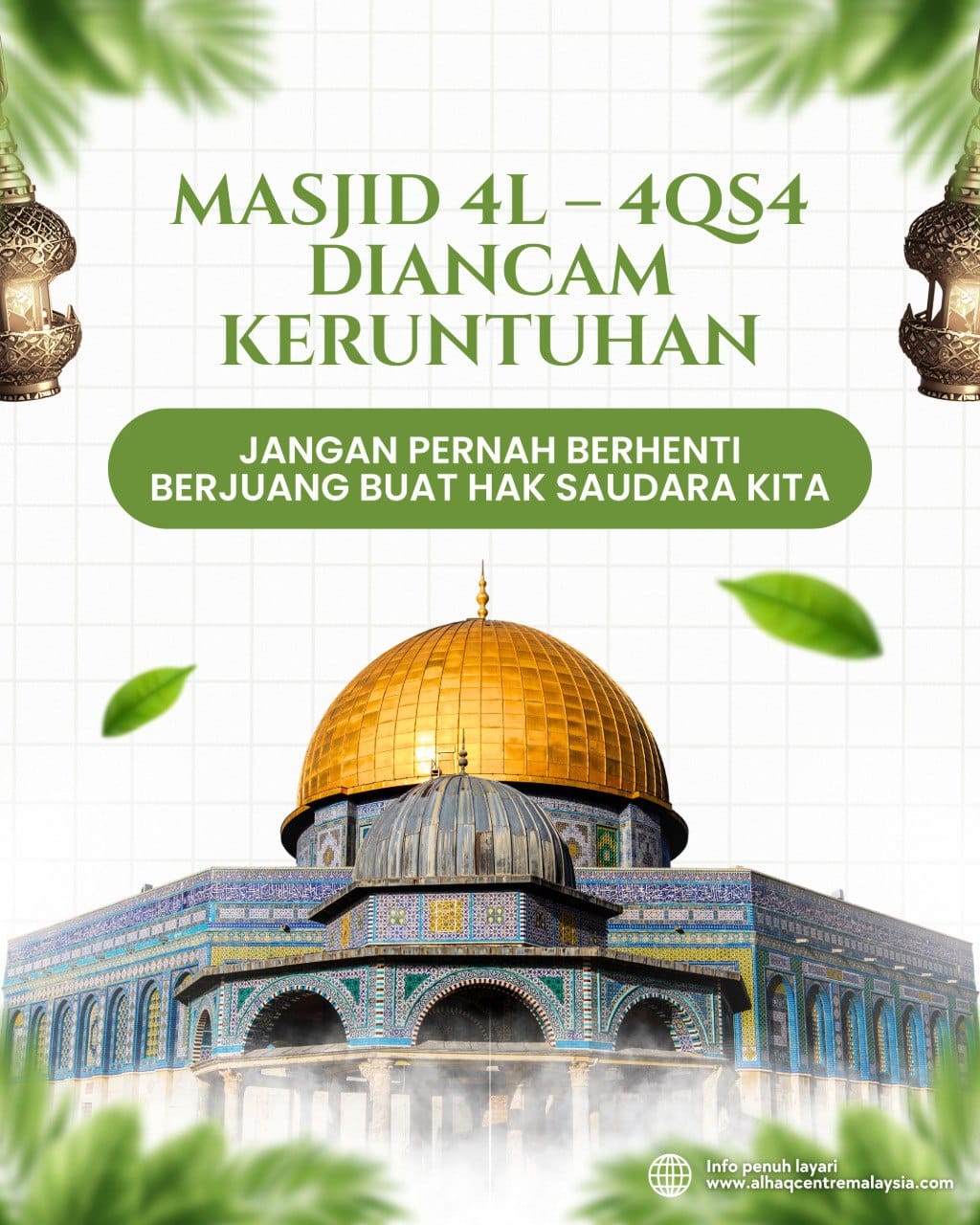 Ketahuilah bahawa membela P4l3st!n bukan sekadar isu kemanusiaan, tetapi ia adalah tanggungjawab iman. Selagi azan masih berkumandang di bumi ini, selagi kalimah Lā ilāha illallāh tersemat di hati kita, maka selagi itulah kita wajib mempertahankan @l-4qs@. Perjuangan ini bukan hanya dengan senjata, tetapi dengan doa, sedekah, kesedaran, dan suara. Setiap perkongsian, setiap doa selepas solat, setiap usaha menyalurkan bantuan, semuanya adalah bentuk jihad yang diterima di sisi Allah. Jangan pernah merasakan usaha kita kecil, kerana Allah SWT menilai keikhlasan, bukan kekuasaan.