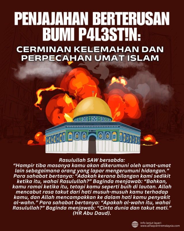 Setiap hari, kita menyaksikan tangisan anak kecil, ratapan wanita, dan kehilangan nyawa yang tidak bersalah. Umat Islam di seluruh dunia bersimpati, menzahirkan rasa marah dan benci terhadap kezaliman penjajah. Namun, di sebalik lautan emosi dan semangat solidariti, hakikatnya Palestin masih belum bebas. Inilah tanda bahawa umat Islam sedang berdepan satu ujian besar, ujian kelemahan dan perpecahan. Rasulullah SAW bersabda: