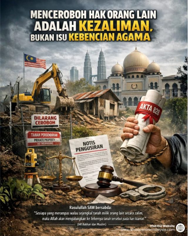 Namun, isu ini tidak wajar dilihat dari sudut perkauman atau kebencian terhadap agama bukan Islam. Sebaliknya, ia perlu difahami sebagai satu isu pencerobohan hak milik dan keadilan, yang ditolak secara jelas dalam ajaran Islam.