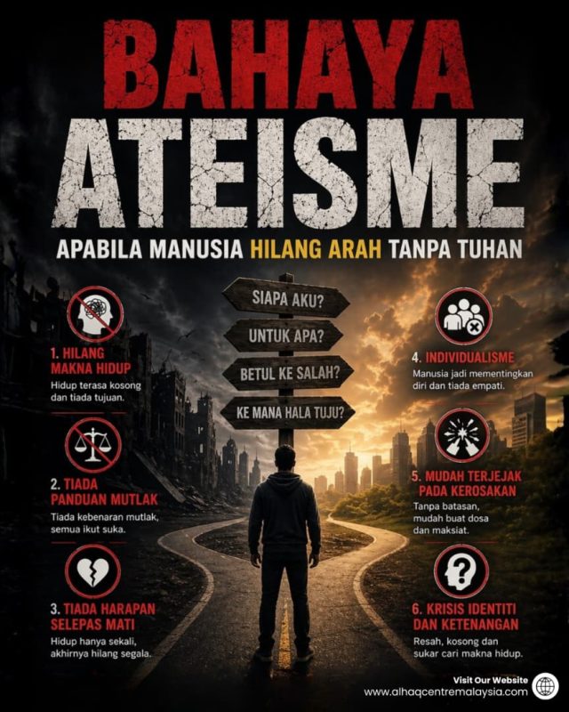 Ateisme, iaitu fahaman yang menolak kewujudan Tuhan, semakin mendapat tempat dalam sebahagian masyarakat moden hari ini. Atas nama kebebasan berfikir dan rasionaliti, fahaman ini dilihat “neutral”. Namun hakikatnya, ateisme membawa implikasi besar terhadap akidah, moral dan kestabilan sosial.