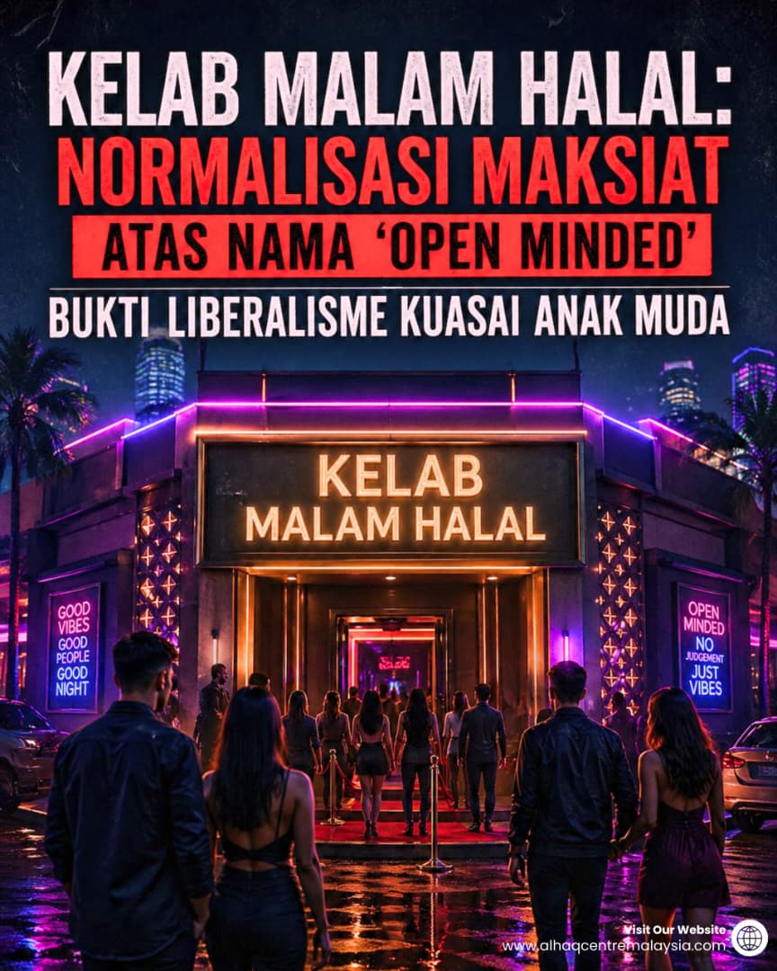 Apabila muncul kenyataan seperti “ini macam kelab halal” atau “open minded sikit boleh?”, ia sebenarnya mencerminkan krisis pemikiran. Istilah “halal” yang suci dalam Islam digunakan secara sinis untuk menghalalkan suasana hiburan bebas, pergaulan tanpa batas dan gaya hidup bercanggah dengan syariat.